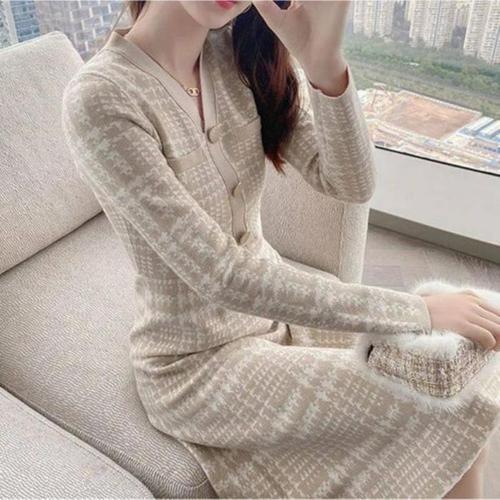 cammello 브이넥 슬림핏 골지 플레어 미니원피스 긴팔 A라인 드레스 하객룩