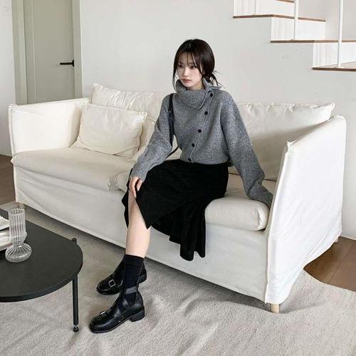 [다잇템]여자 FW 에이라인 단추 혁대 골덴치마 롱스커트
