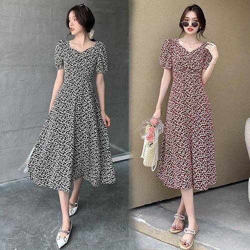 [다잇템]여자 꽃무늬 에이라인 벌룬 휴양 봄옷 롱원피스_3 (17680602A)