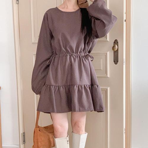 COSYEVNO 여성 원피스 가을 라운드 우아하고 세련된 루즈핏 캐주얼 긴팔 스커트 CXJqz-28