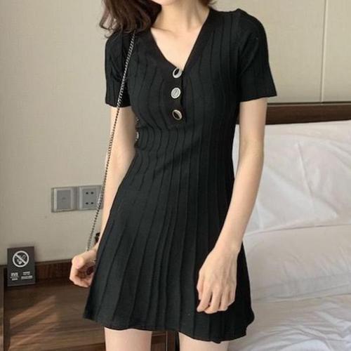 [다잇템]여자 에이라인 반소매 쁘띠 아코디언 원피스 (16286376A)