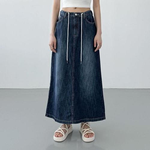[다잇템]여자 자수 에이라인 드로우코드 워싱 롱스커트 (15408486A)