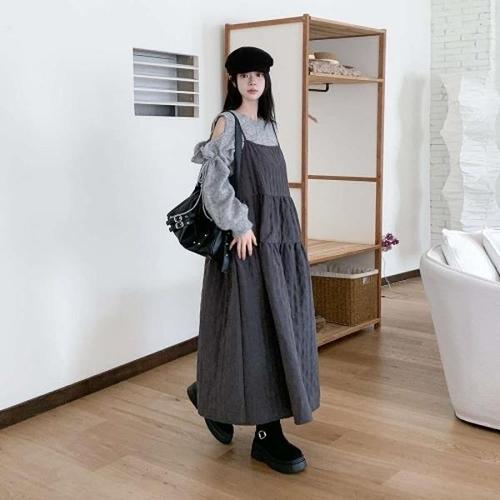 [다잇템][다잇템] 여자 롱 티어드 미니멀리즘 에이라인 퀼팅 코르셋 원피스_23771361_588872