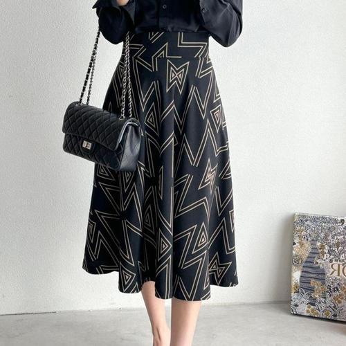 [다잇템]여자 큰사이즈 에이라인 패턴 롱스커트 (12583424A)