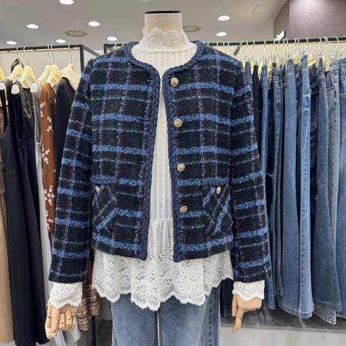 [ab.f.z]abfz라운드넥 포인트 체크 트위드자켓 ASFZ4ZJ011