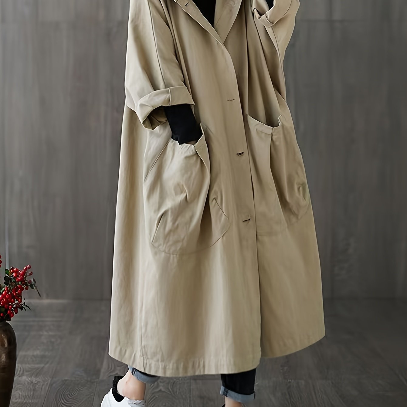 TEMU 플러스 사이즈 - 이 신상 루즈핏, 안감 없는, 가벼운 여성용 트렌치 코트는 7부 소매와 후드가 특징이며, 65-100kg 사이의 여성에게 적합합니다.