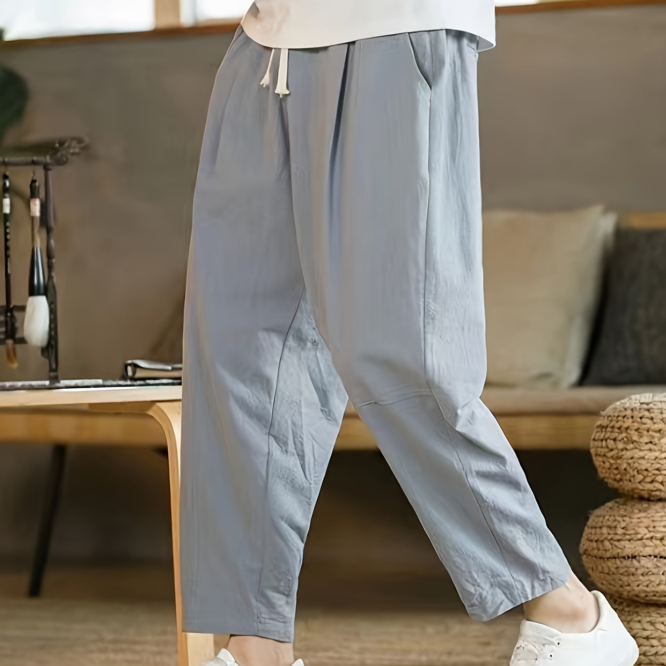 TEMU 남성 여름 캐주얼 조거 팬츠 - 가볍고 통기성 좋은 원단으로 제작되었으며, 신축성 있는 드로스트링 허리 밴드, 포켓이 있는 루즈핏으로 헬스, 러닝 및 일상복에 적합하며, 편안하고 좋은 착용감을 위해 단색으로 디자인되었습니다.