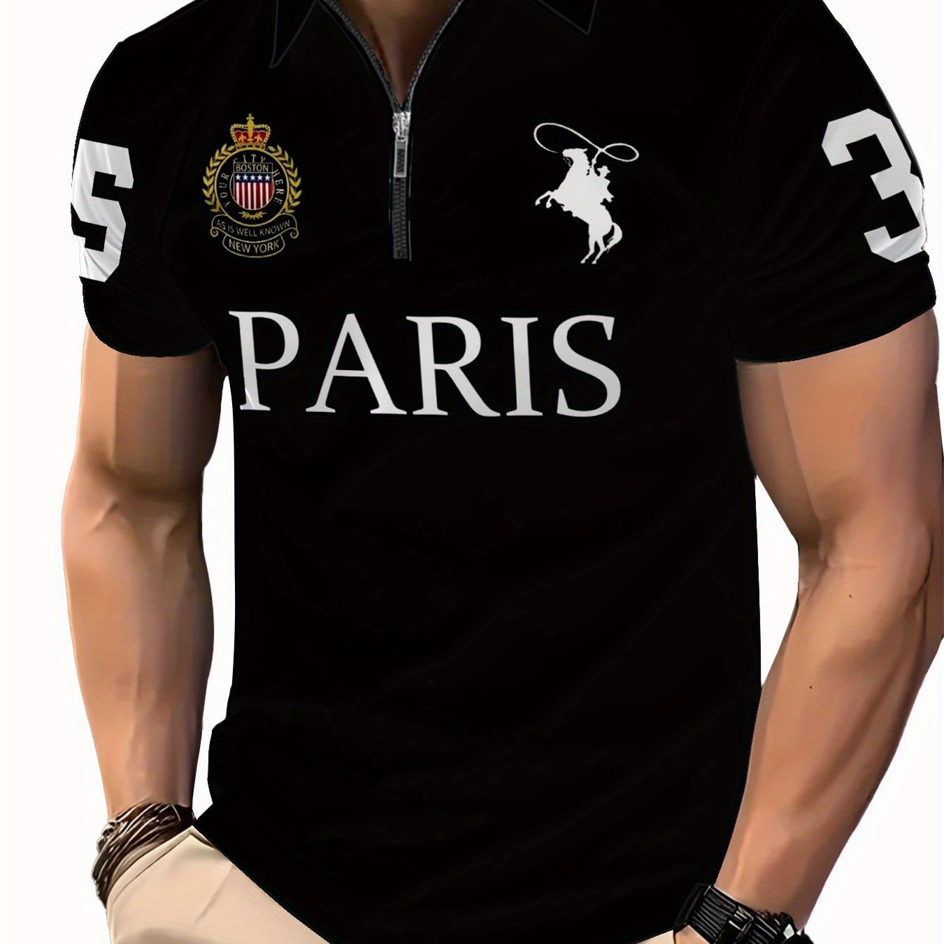 TEMU 남성용 스타일리시 레드 파리 프린트 셔츠 - 통기성 좋은 100% 폴리에스터, 반팔, 지퍼 디테일, 골프 및 캐주얼 착용에 편안한 핏, 골프 의류