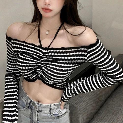 오프숄더 데이트룩 크롭티 여행룩 데일리룩 슬림
