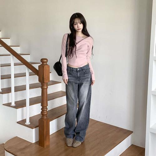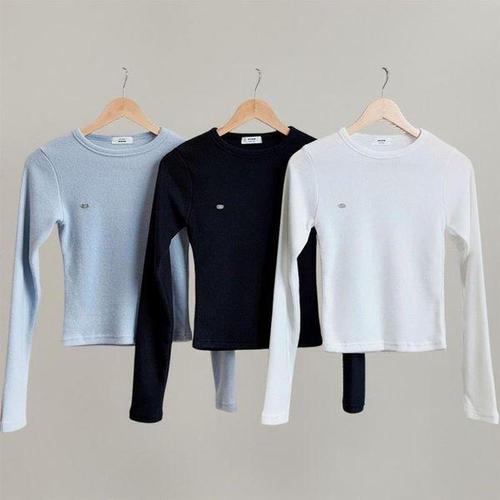 긴팔 니트 티 셔츠 라운드넥 정장 카라넥 슬림핏 편안한 부드러운 티셔츠 손목 시보리 따뜻한 글로벌와이