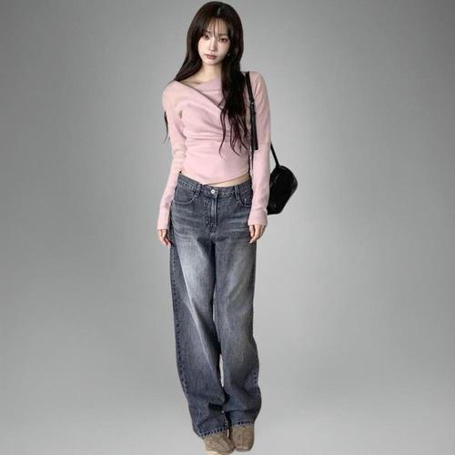 골지 니트 긴팔 티셔츠 여성 브이넥 슬림핏