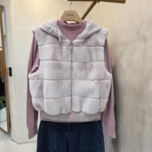 메리앤유 보들 에코퍼 집업 후드 털 조끼 베스트 누빔안감
