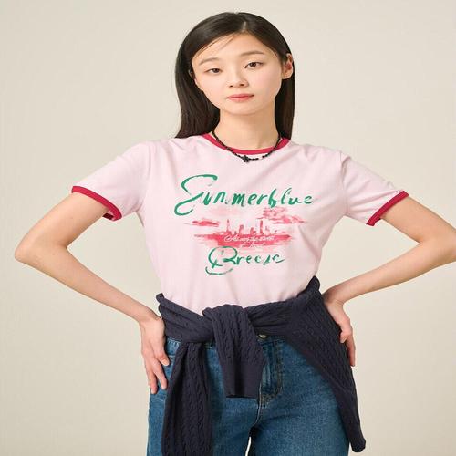 [빈폴레이디스]그래픽 반소매 링거 티셔츠 핑크 (BF5442C06X)