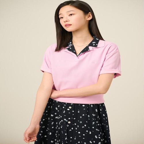 [빈폴레이디스]피케 밑단 스트링 반소매 T칼라 티셔츠 핑크 (BF5442C04X) .