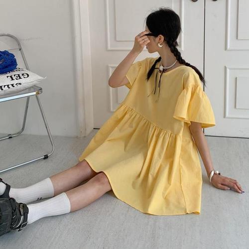 [다잇템]여자 옐로우 프릴 SS 귀여운 박스핏 미니원피스 (16136932)