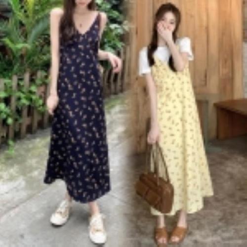 [다잇템]여자 옐로우 꽃무늬 슬리브리스 롱원피스 (15142710A)