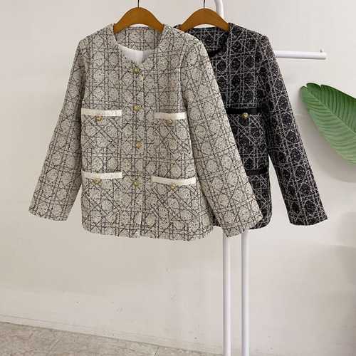 UPPERCUT 자체제작 여성 라운드넥 클래식 긴팔 트위드 자켓 빅사이즈