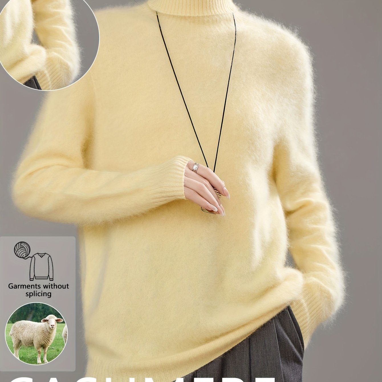 TEMU 여성용 2025 신상 겨울 캐시미어 스웨터 - 플러시 두꺼운 털, 터키석 하이넥 긴팔 코트 스타일 칼라, 순수 캐시미어 (혼방 없음), 부드럽고 따뜻한 코트 또는 스웨터, 캐주얼 & 포멀 웨어, 손세탁 가능한 겨울 필수 아이템
