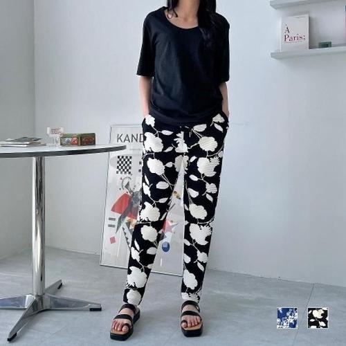 여성 플라워 엠보 와이드팬츠 밴딩 긴바지 꽃 롱팬츠