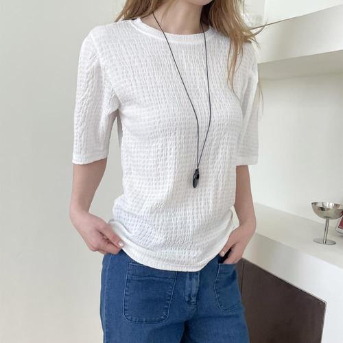 [옷자락] 여자 여름 시원한 루즈핏 엠보 반팔 티셔츠