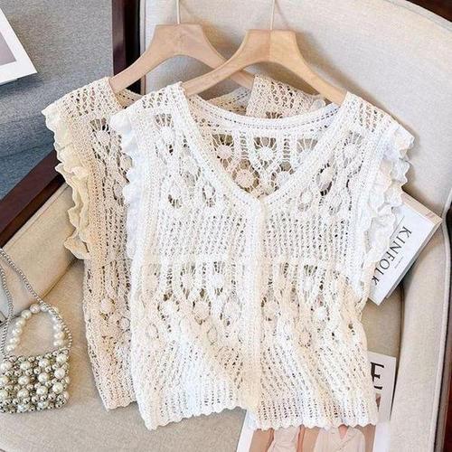 1+1 여름 보헤미안 그물 레이어드 브이넥 니트조끼 베스트