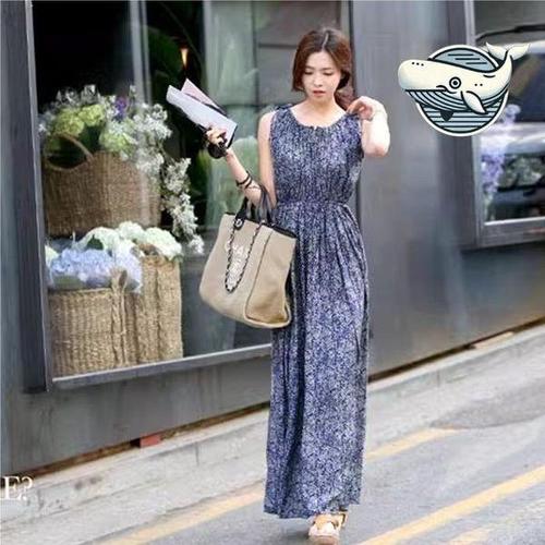 플라워 프린팅 롱 원피스 민소매 여름 데일리 원피스