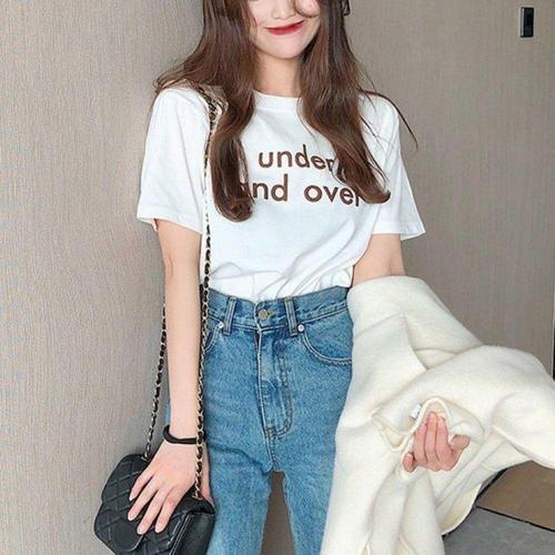 [오너클랜]인기상품 여성 라운드 반팔 티셔츠 여름 데일리 레터링 박스핏 맨투맨 카라티 [WFLLRK7_260305]