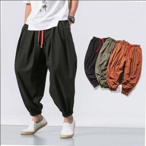 [에이치플러스몰]차이나풍 여름 데일리 와이드 면마 클래식 배기팬츠