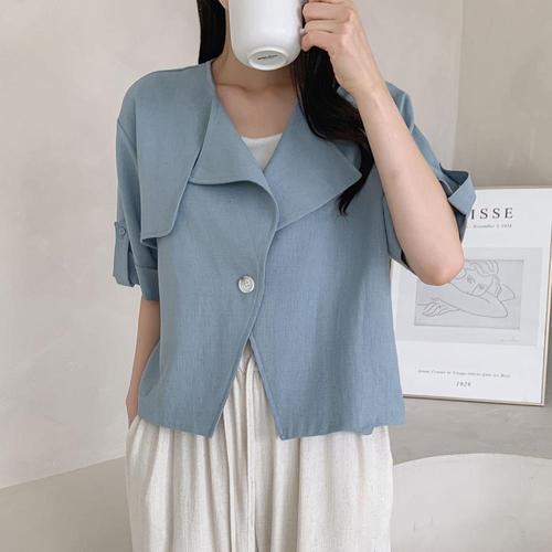 [옷자락]여자 언발 싱글버튼 롤업반팔 크롭 린넨재킷 여름 자켓