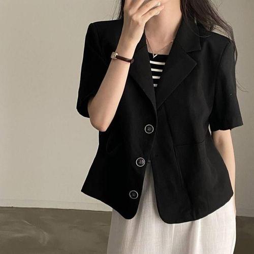 린넨 자켓 여성 블레이저 2버튼 반팔자켓 여름 캐주얼 패션자켓 WFKQ1JH