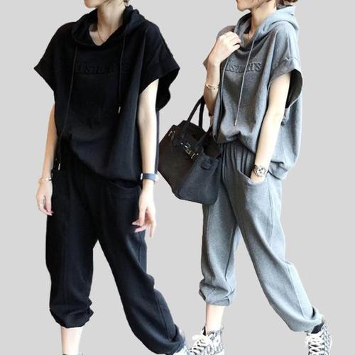 [로즈엘리]44부터 88까지 루즈핏 캐주얼 반팔후드+조거팬츠 여름 트레이닝복 상하세트