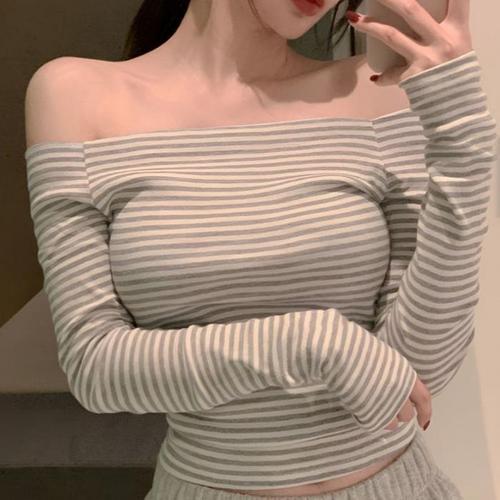 [주식회사 브이와이][JHQRJG9K_4B]여자 여름옷 2컬러 데이트룩 오프숄더 티셔츠 (24056927A)