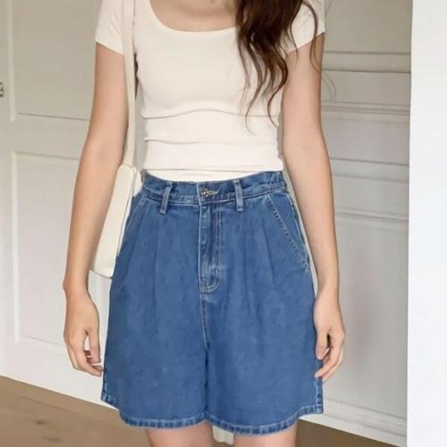 [셀러허브_여성트랜드패션]ONM 여름 데님 반바지 롤업 청반바지 하이웨스트 숏팬