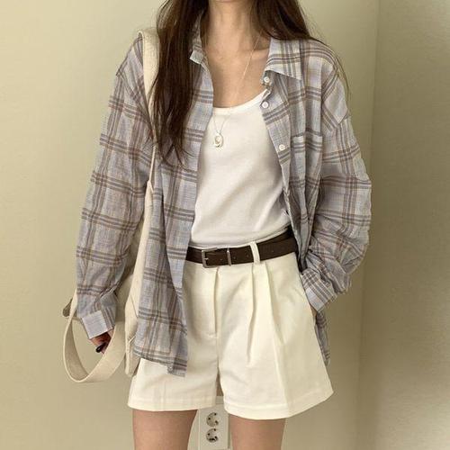 [라일리여성의류] Rly 썸머 여성 셔츠코디 긴팔 체크 루즈핏 아우터