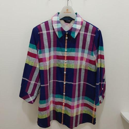 퀸앤조이 여성 여름 빅사이즈 린넨 100% 블라우스 린넨의 계절 미오제 뒷버튼 잔체크 셔츠