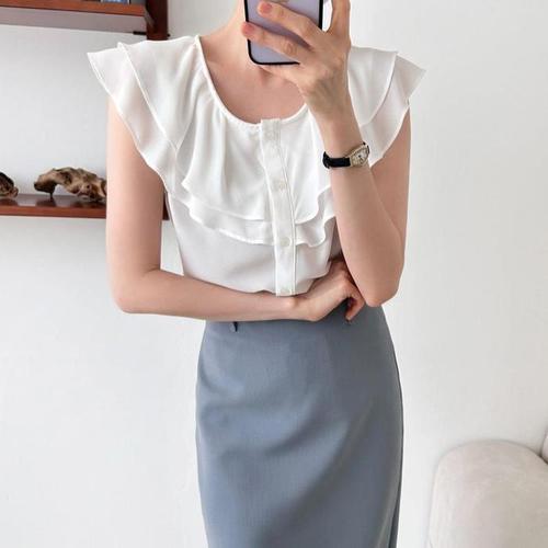 [다잇템]여자 코디 슬리브리스 여름하객룩 블라우스 (16732257A)