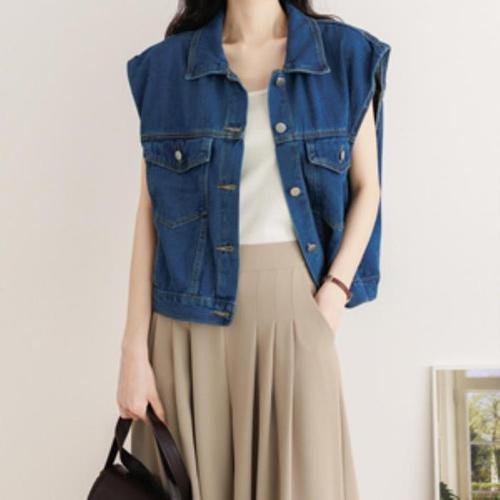 [다잇템]여자 부드러운 카라넥 코디 썸머 환절기 조끼 (18011938A)