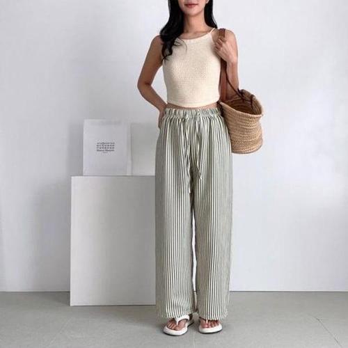 smile morli 시원한 스트라이프 와이드 바지 여성 팬츠