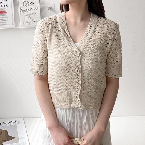 [탱커스]펀칭 그물 여름 긴팔 크롭 니트 가디건 (TV2CD005L0)
