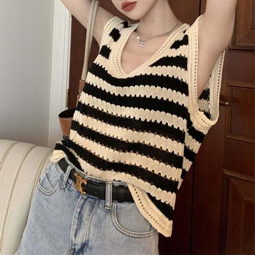 [셀럽하우스]RC-K01 JSSA8324 스트라이프 여름 펀칭 니트티/2type/
