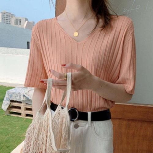 [셀럽하우스]여자 PROZ1598 여름 스타일 브이넥 니트티 1P 고품질 반팔 티셔