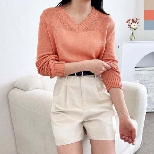 [셀럽하우스]브이 PPSL6953 니트티 여자긴팔니트 썸머 뽀얌 기본 긴팔니트