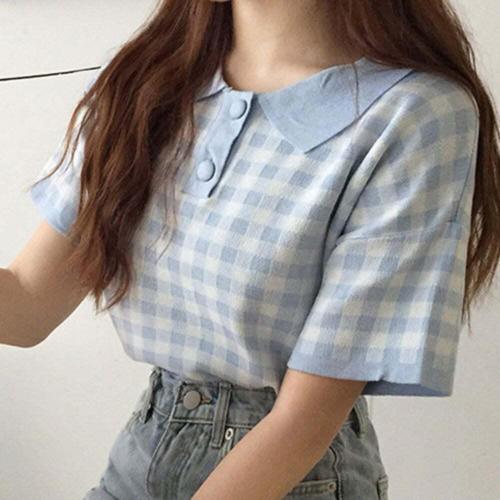 [셀럽하우스]여름 OUAW3928 니트티 데일리 단추포인트 귀여운 클래식 콕카라