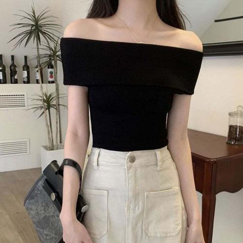 [셀럽하우스]여자 BUSC3453 여름 스타일 오프숄더 니트티 1P 고품질 민소매