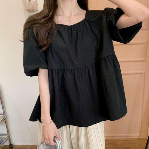 [셀럽하우스]등파임 POXO4127 블라우스 루즈핏 퍼프 여름 셔츠 오피스룩