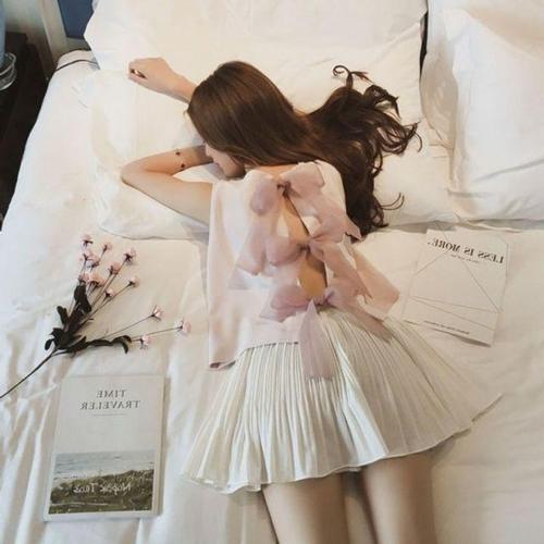 [셀럽하우스]여자 ZQLJ1937 인기 리본 반팔 블라우스 감성 여성 여름 상의