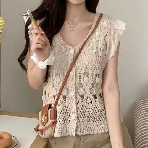 [엄지척]여성 크로셰 베스트 여름 뜨개 조끼 가디건 베이지_20363018_667501