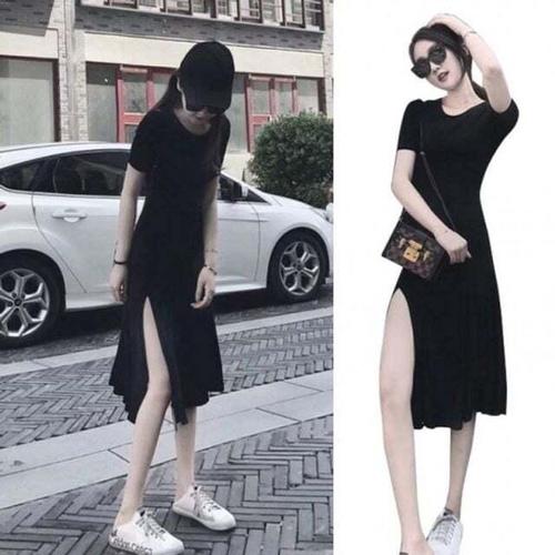 [셀럽하우스]블랙 PEHX7200 데일리 추천 원피스 여름 반소매 옆트임