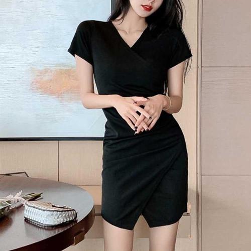 [셀럽하우스]블랙 RDJH3227 데일리 캐주얼 원피스 여름 필수템 반소매 옆트