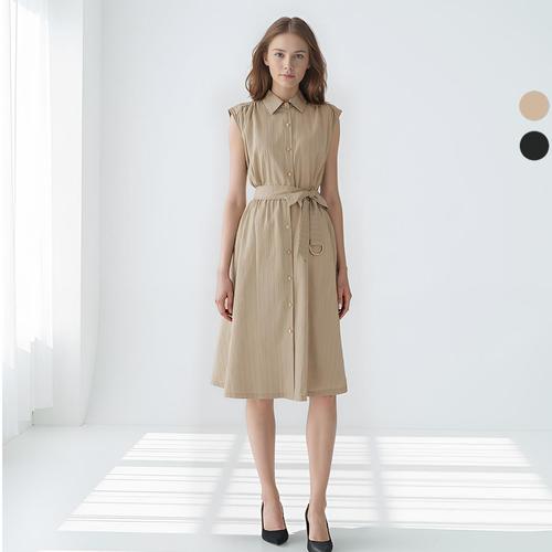 [비비드 시크릿가너]여성 여름 벨티드 민소매 스트라이프 원피스
